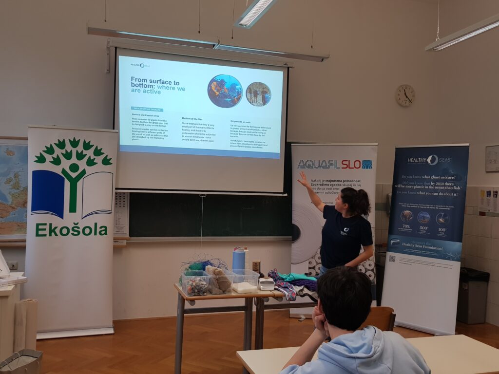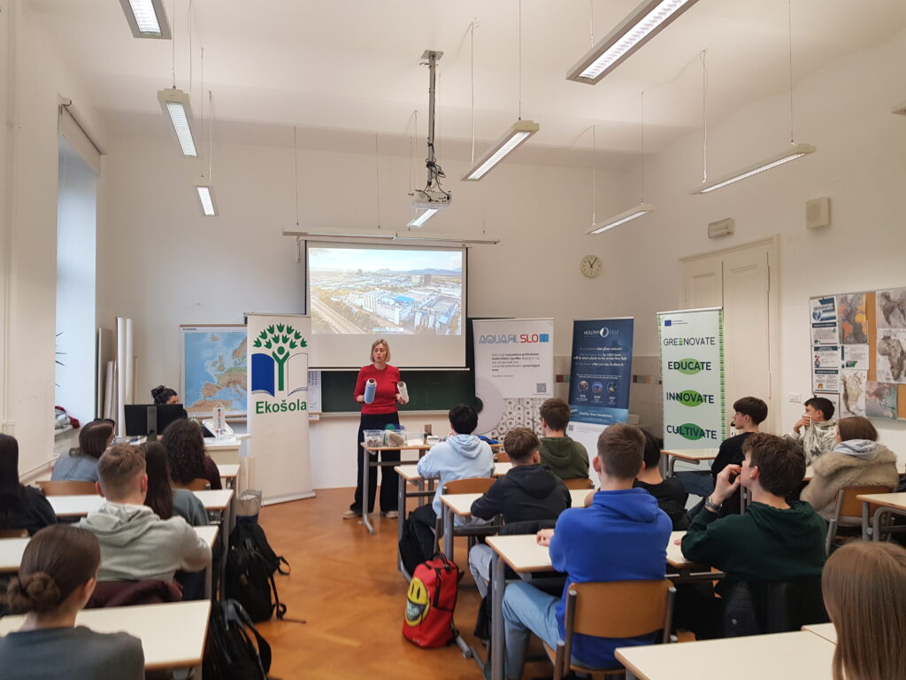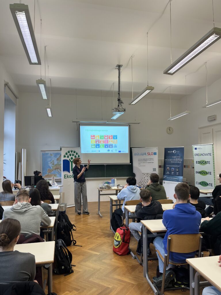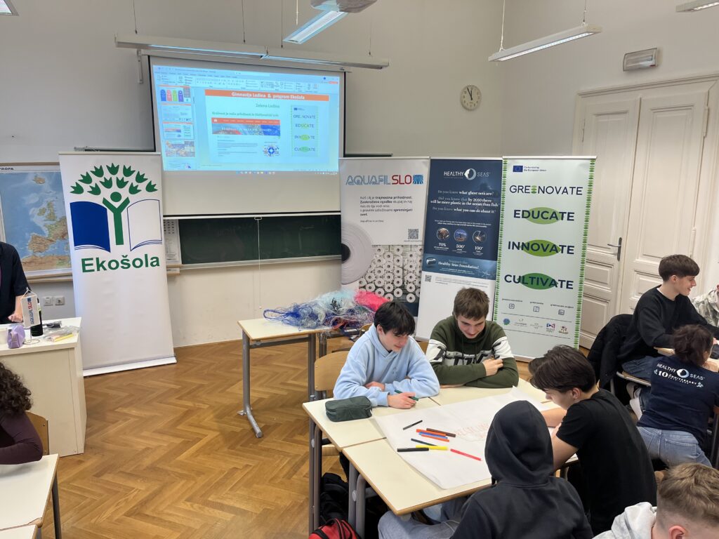 9 February 2026 – As part of the Greenovate 2.0 project (Engaging Youth in a Digital Green Future 2.0, Erasmus+) a local follow-up event was organised at Gimnazija Ledina in Ljubljana, bringing together 32 secondary school students to explore circular economy solutions in practice. The session has been co-hosted by representatives from AquafilSLO and Healthy Seas, who presented real-life examples of circular solutions in the textile value chain.