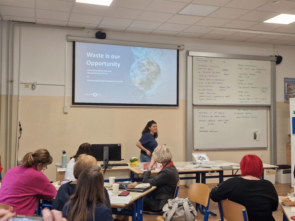 The programme was enriched by the participation of representatives from Healthy Seas and AquafilSLO. The Healthy Seas representative provided practical recommendations on how to approach the development of a zero-waste school plan through circular thinking and how to search for solutions beyond established frameworks. Participants tested selected elements of the methodology through a practical exercise, reflecting on real-life school scenarios and identifying opportunities for improvement.